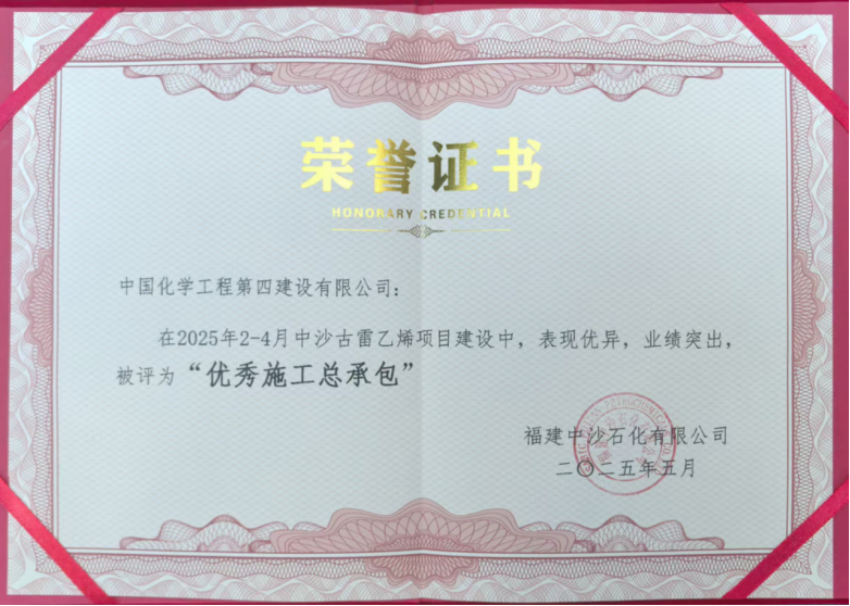 福建中沙古雷乙烯項目傳來捷報,華南公司獲評業主“優秀施工總承包”稱號。該項目作為福建省最大中外合資項目,項目團隊負責PC聯合裝置及全廠管廊安裝,通過“扁平化管理”優化工序,4天完成103米火炬分段吊裝,焊接合格率達99.8%,連續實現安全零事故,展現了石化工程領域的全流程管控能力。