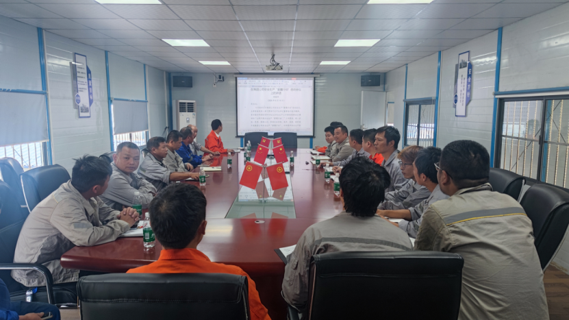 (圖為建筑工程公司岳陽縣項目群開展安全生產“雷霆行動”學習宣貫和警示教育)