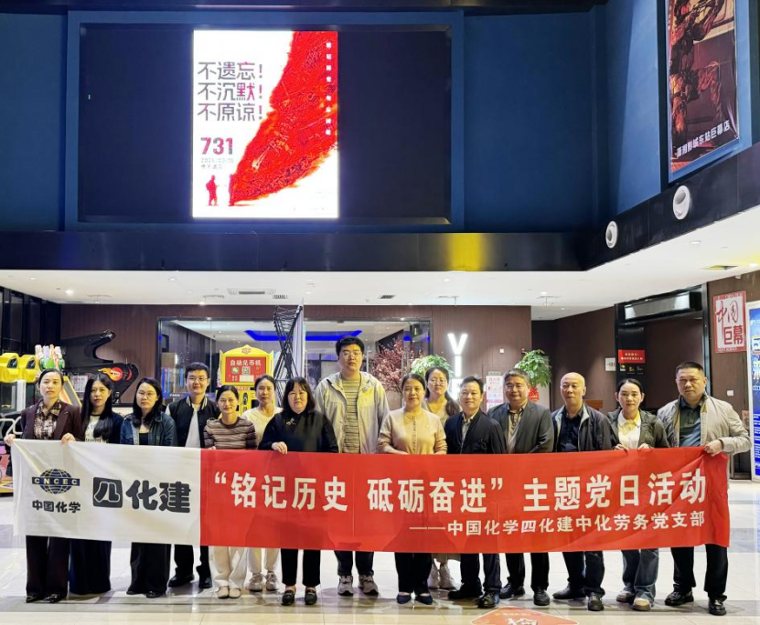 近日,中國化學四化建集中組織機關和駐岳單位黨員、團員開展以“光影鑄魂傳薪火 砥礪奮進新征程”為主題的觀影活動,集體觀看愛國主義教育電影黨課《731》,以光影藝術為載體,唱響愛國主義主旋律,引導黨員、團員銘記歷史、緬懷先烈、珍愛和平、開創未來。