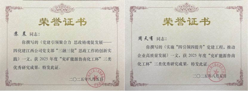 此次公司獲得的2項(xiàng)三類優(yōu)秀研究成果分別為:第一分公司(原江西公司)蘇晨撰寫的《黨建引領(lǐng)聚合力 思政鑄魂促發(fā)展——四化建江西公司黨支部“三融三促”思政工作的創(chuàng)新實(shí)踐》論文和華南公司周天有撰寫的《實(shí)施“四引領(lǐng)四提升”黨建工程,推動(dòng)企業(yè)高質(zhì)量發(fā)展》論文。這2項(xiàng)研究成果緊密圍繞新時(shí)代國(guó)有企業(yè)黨建與思想政治工作面臨的新形勢(shì)、新任務(wù),結(jié)合公司基層黨建和項(xiàng)目思想政治工作的具體實(shí)踐,分別從黨支部特色工作法和黨業(yè)融合角度,深入總結(jié)了公司推動(dòng)思想政治工作與生產(chǎn)經(jīng)營(yíng)深度融合的有效路徑和創(chuàng)新模式,具有較強(qiáng)的實(shí)踐價(jià)值和借鑒意義。