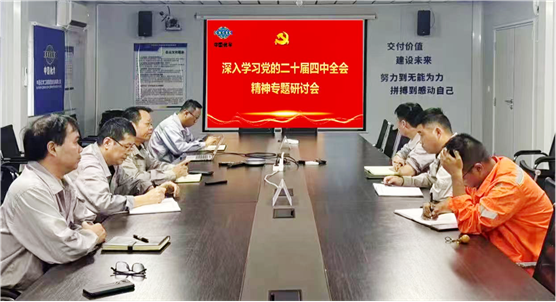 近日,湛江一體化項目黨支部組織召開專題研討會,深入學習宣傳貫徹黨的二十屆四中全會精神,并圍繞如何結合實際抓好貫徹落實進行了深入交流研討。與會人員紛紛表示,要堅持學用結合,緊扣項目收官,緊盯安全、質量、進度關鍵環節,以“時時放心不下”的責任感攻堅克難,推動學習成果轉化為項目建設務實舉措,確保項目圓滿交付,為“十五五”開局筑牢基礎。